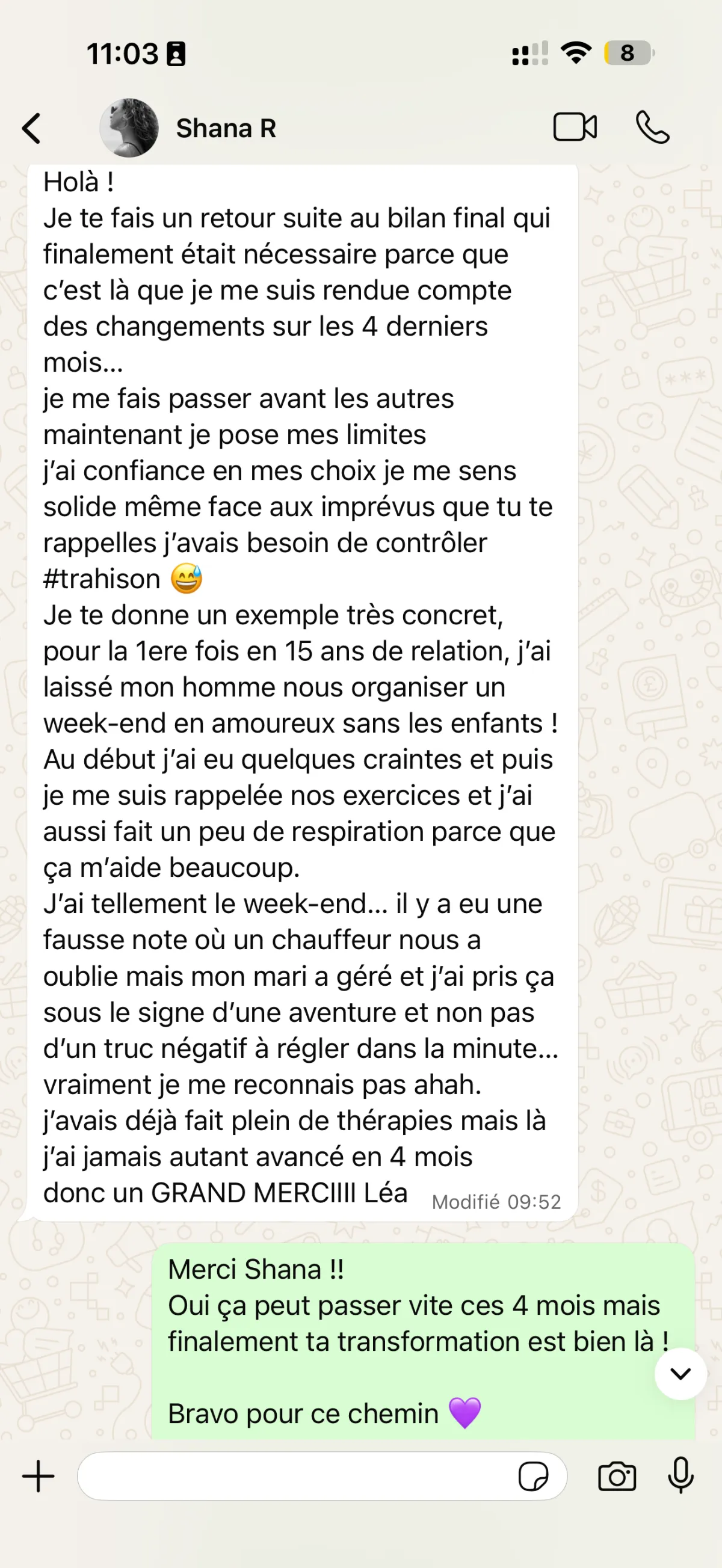 Tu veux te sentir enfin en sécurité avec toi-même, arrêter de douter de ta valeur à la moindre situation, te sentir alignée, légitime et libre d’être pleinement toi, retrouver ton énergie, ta joie, ta puissance.